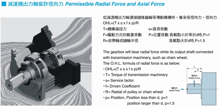 ![]() 減速機出力軸容許徑向力: ![]()